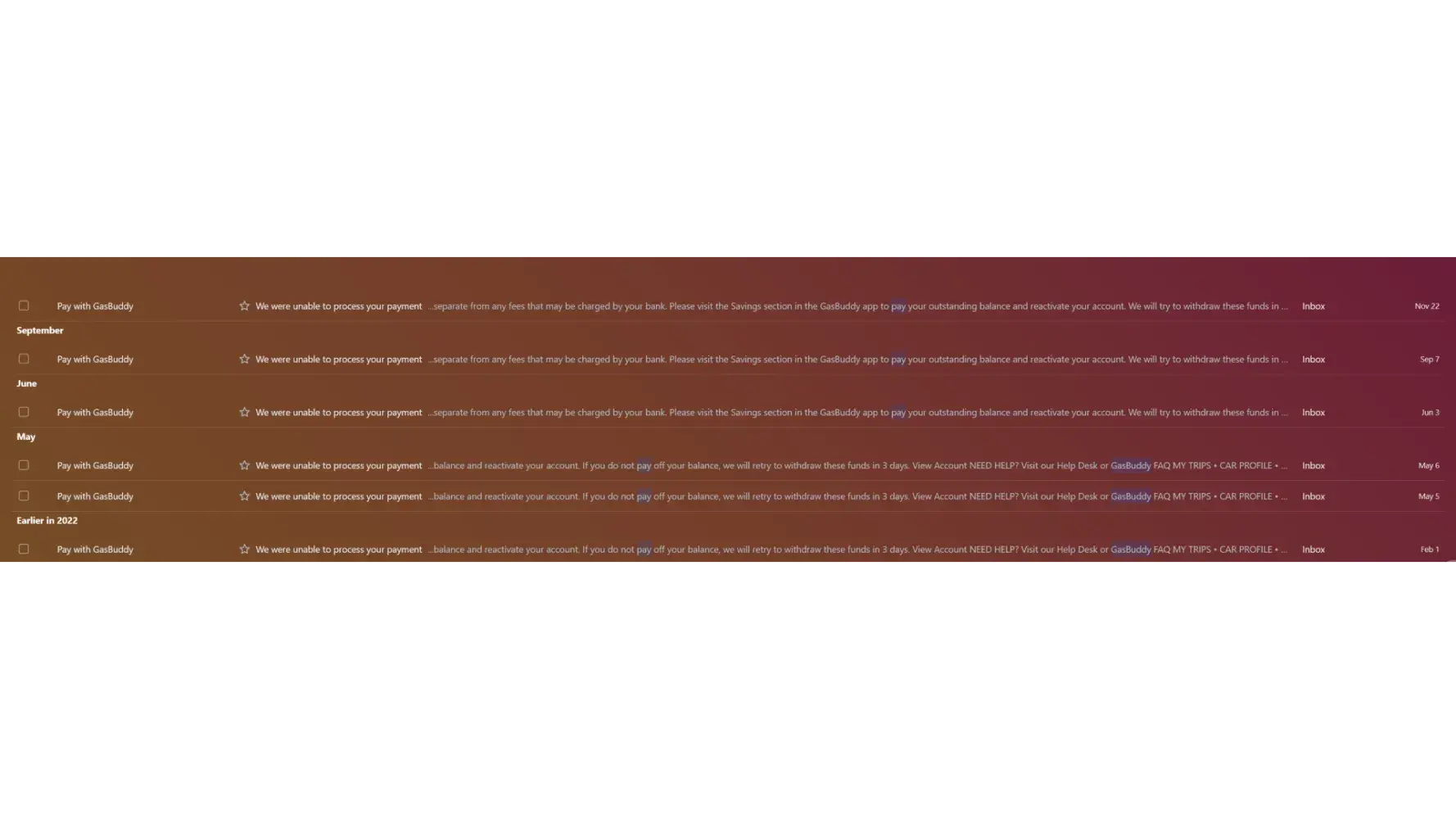 I uninstalled the app from my phone and tried to unsubscribe from their emails, but I couldn't find a link to do that within their emails or on their website. So, I unsubscribed via GMail's link, hoping that it would send GasBuddy's emails straight to Spam. I wish there was an option to send their emails straight to Trash or even better, to Hell.