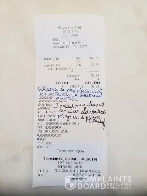 I was on your App (GasBuddy) searching for low gas prices. I found a Shell Gas station (See Address on attached receipt) with a listed price of $3.60 a gallon. However at the gas station the price was listed at $3.68 a gallon. I followed Gas Buddy App instructions by activating your offer, entered my phone number and logged on into my account as instructed by the App and the account was activated. I pumped the gas after I entered my credit card into the pump slot. The app asked me to upload the receipt, guess what, the upload button was not available on the app settings. Meaning I didn't get the discount, went inside the gas station and explained to the clerk what had happened. He told me to get in touch with you.