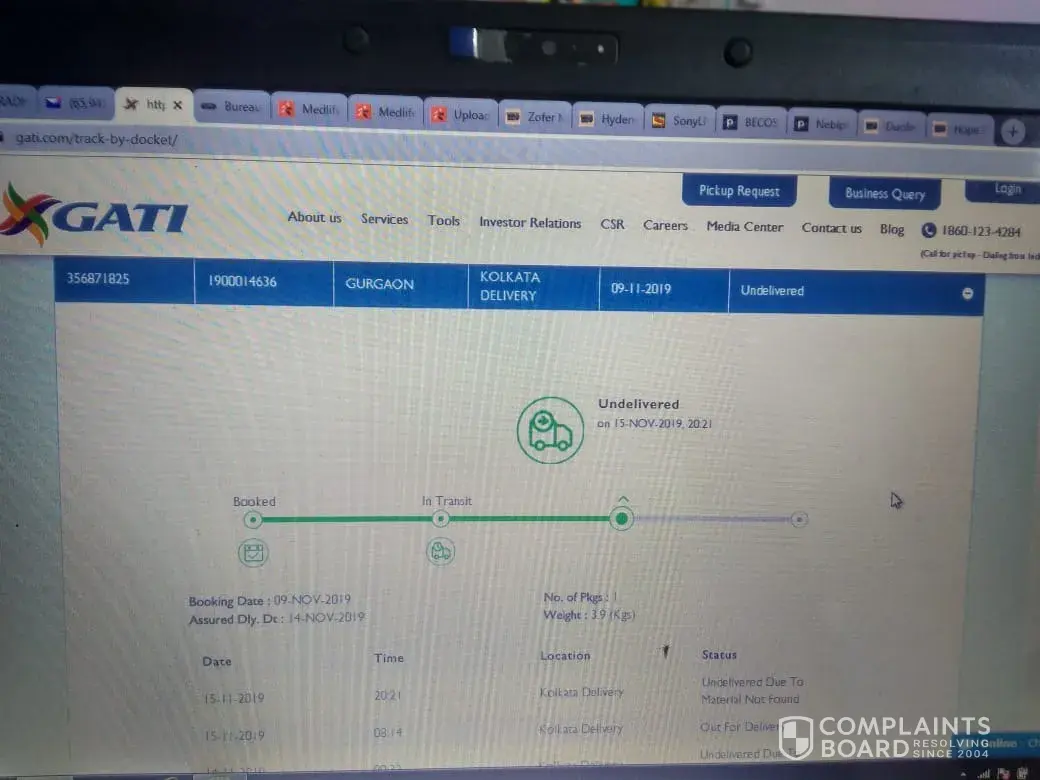 my docket number was [protected] in Gati and they have assured of delivery on 14th November 2019 and parcel recived on their destination city that is bhadreswar on 13th november 2019 at near about 12 P.M. and they doesnot delivered on that day that was ok as they assured date was 14th November but on 14th November firstly they messaged of out for delivery on thier website and after some time they messaged undelivered due to vechicle not avilable. how such can be happen to such a big logistic and again on 15th November they were out for delivery and this time at late night near about 9 P.M. they are saying undelivered due to material not found. what does this means ? is it they have lost the parcel which was emergency medicine of customer as I am owner of "PRADHAN MANTRI BHARTIYA JANAUSHADHI KENDRA" at BHADRESWAR. after arguging on customer care they said that they doesnot have proper address of ware house and doesnot have phone number and after lots of argument they provide two numbers one after one that's are 8146647395 of Abhi Sharma the manager who is looking over the matter but after I rang him he doesnot picked my phone and then switched off his phone. and another phone number provided of driver named Subir Bala who's number was 8013693460 and after giving near about 15 calls on this number he doesnot replied last night and morning I too tried to call but again phone get rang out no one picked up.