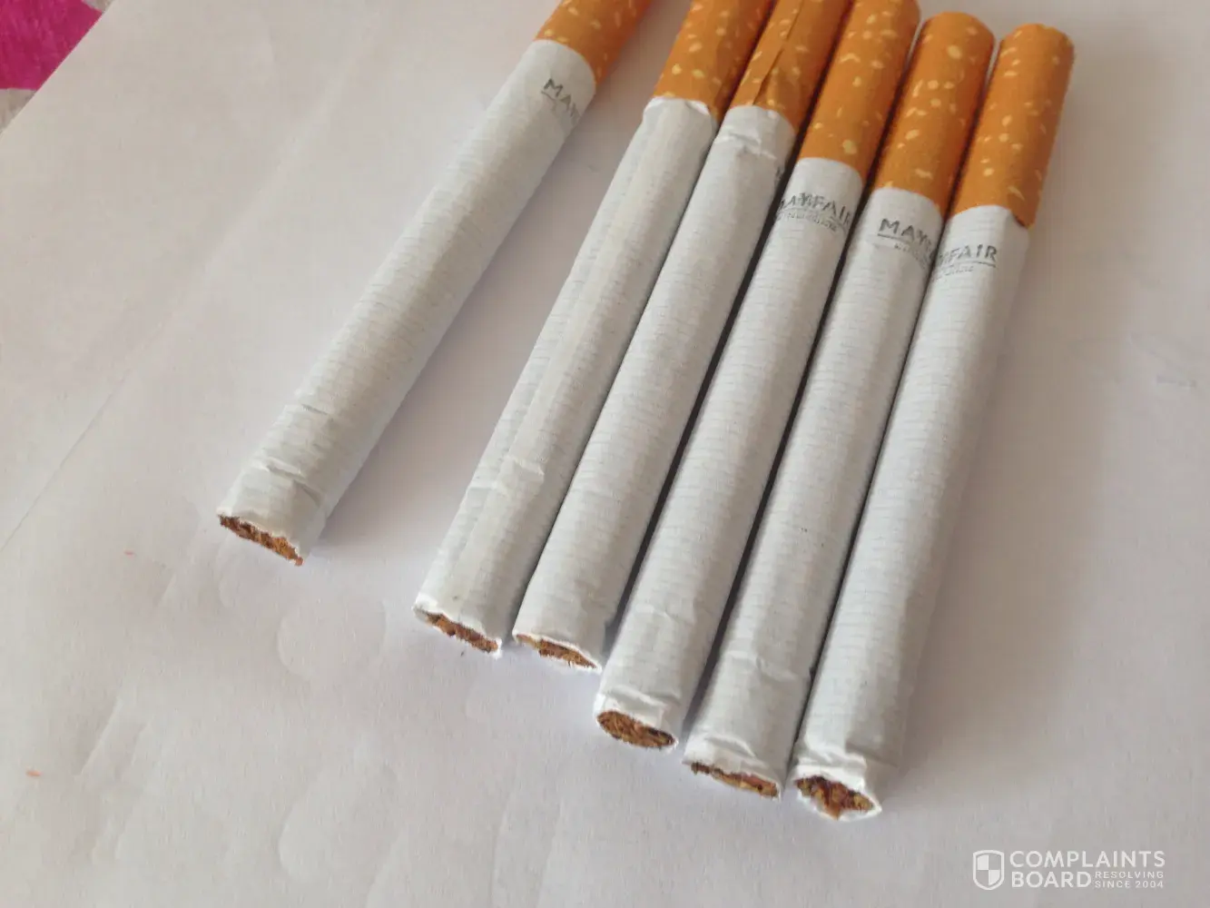 I bought myself 200 Mayfair, on opening the first pack I was shocked at how scruffy the cigerettes looked, it looks like they were the duff ones and you threw them in anyway, the tobacco is loose in them and they feel like they are going to fall apart when smoking them. I'm not happy that I paid out money but got shoddy goods. I would either like my money back or another box of proper Mayfair, lease ones look cheap and nasty and poorly made