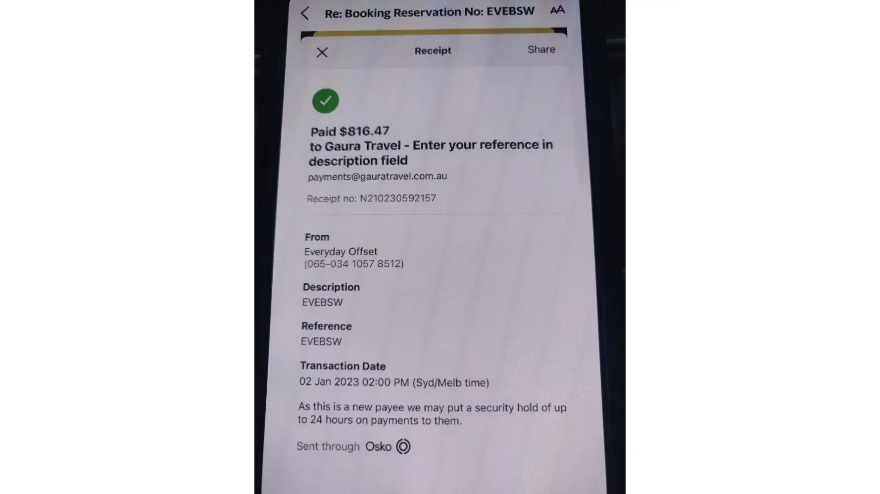 This is in regards to the Reservation. We made a booking for my mother and father one way to fly from Mumbai to Melbourne using Gaura Travels for 8 Feb 2022 and we completely put our trust on them as with the current travel changes and conditions being a travel agent we trusted, they will be aware of all the documents required while travelling .