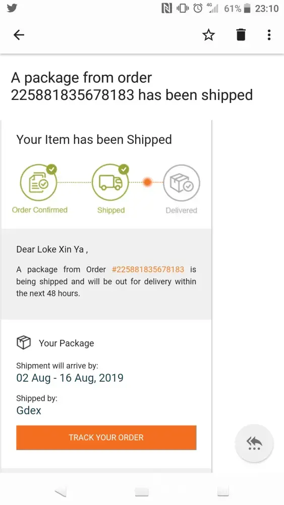 So barang yang saya order dari Lazada tak sampai lagi.Barang tu stuck 2 hari dekat pejabat pos entah kenapa maybe sebab busy barag banyak lagi ok.But bila hari sabtu 22/06/2019...barang tu out for delivery waktu pagi but bila petang barang tu FAILED untuk hantar attempt failed katanya.BUT, saya tak ada satu pon panggilan dari Gdex tanya tentang lokasi rumah ataupun pemberitahuan sebab kenapa tak boleh pos.