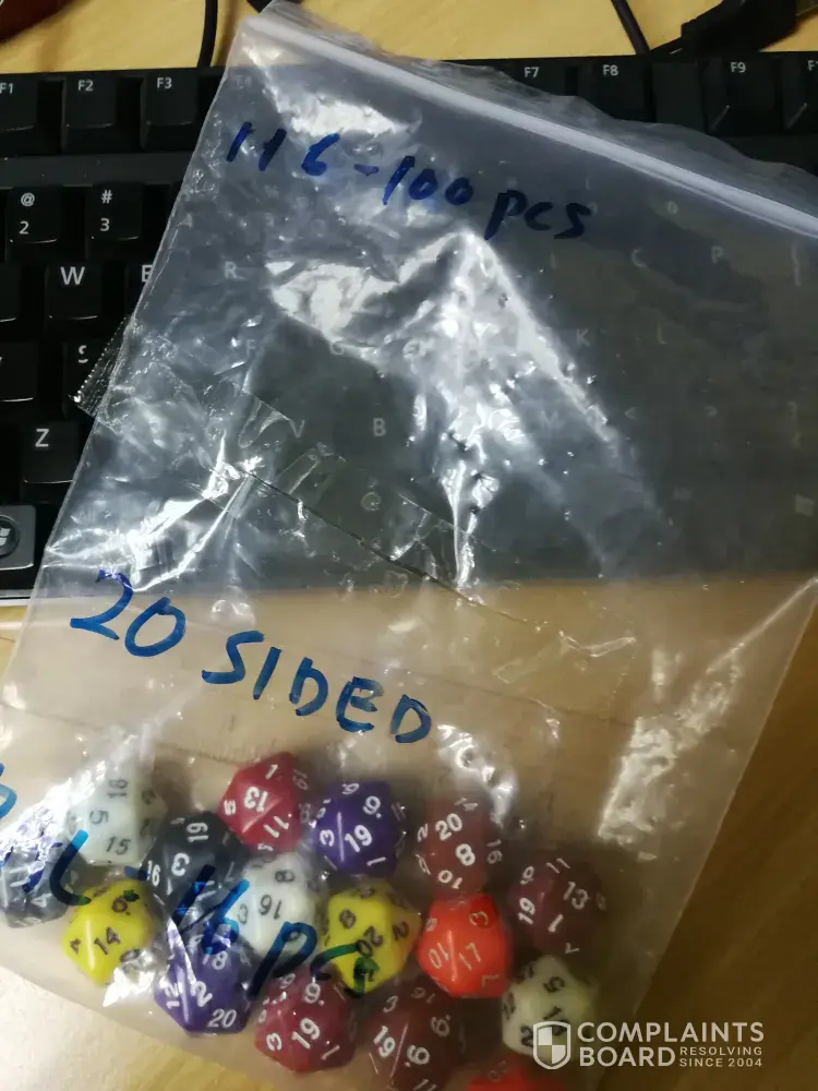 3) This time, the goods received was short very seriously - 15pcs in Green colour - 20 sided dies. This is first time short goods received from your company - GDEX.
