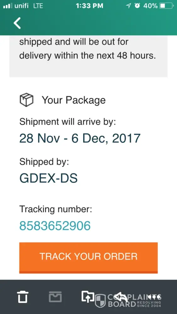 the complain is for GDEX service for kuantan area.
