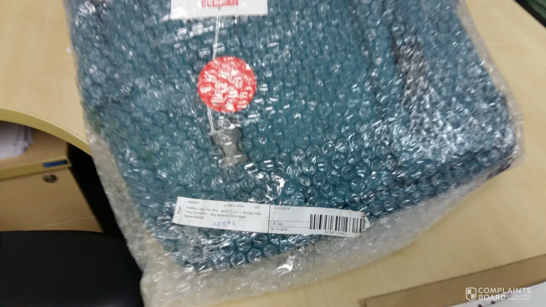 On 31/12/2016, receiver received a parcel. This is wrong parcel. Mine is a box ( 27 books packed in a4 rim box and wrapped using bubble pack). But receiver received a pc of bag.