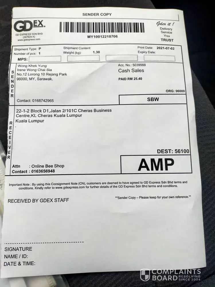 However the branch has not received yet. We have called gdex several times and gone to gdex sunway to check but unsuccessful. Our consignment nos is my [protected] dropbox at gdex sunway on 22/1/2021.