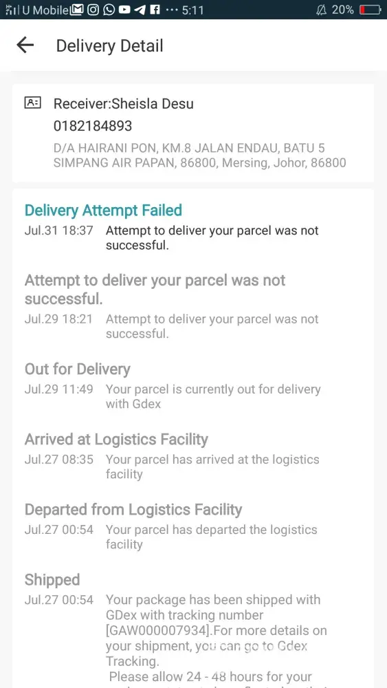 I already call gdex who are handle to deliver item so many times. but in the end of the day gdex updated attempt delivery not success. I also said if hard to find my location i will pick it up. And today my call already been block by the gdex who are should deliver my item..