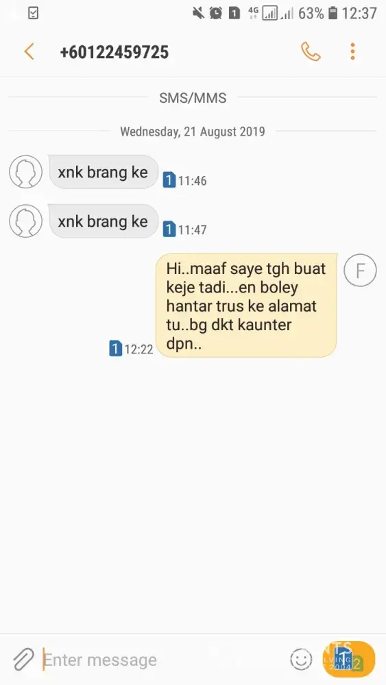 My parcel should be delivered today and your delivery boy called me to deliver the parcel. I did'nt pick up bcoz i'm working n my phone on silent. He message me with no intro by just mentioning 'xnk ambk brg ke'. Did gdex have standardize greeting for customer? If not, you should have one. I called him to explain and tell him to deliver to the customer service at my workplace but he keep asking where is the scott garden, decathlon, jalan klang lama. Such a nunsaince excuses. He told me that the customer service do not receive parcel. He did he know. I also one of the customer service, so I know the procedure. He end the called suddenly when I was talking. I just think maybe he is driving. I think there are ways to solve this matter in good way but personally he is rude. I work in service also so I know how hard to deal with customer but this is not the way. I apologized but this can ruin gdex reputation. Hope action will implement on this matter. P/s : I put my company name so it is easier on your side. No t happy with this situation.