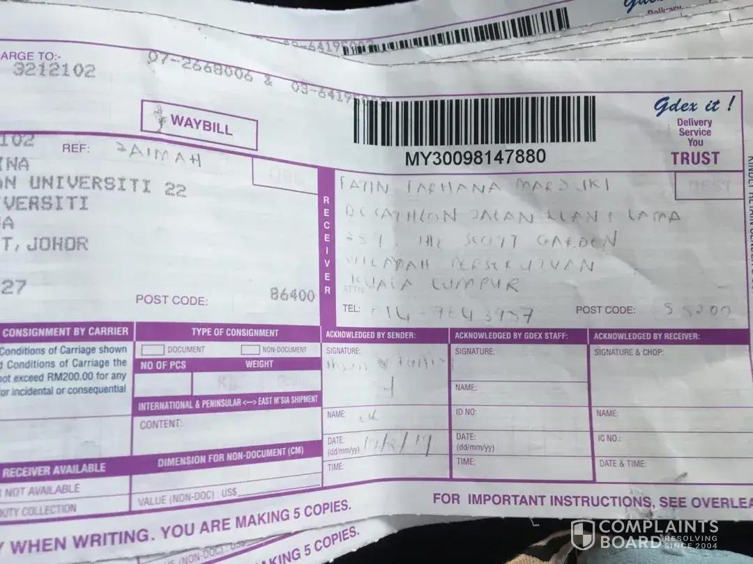 layanan buruk staff gdex sg koyan terhadap sender