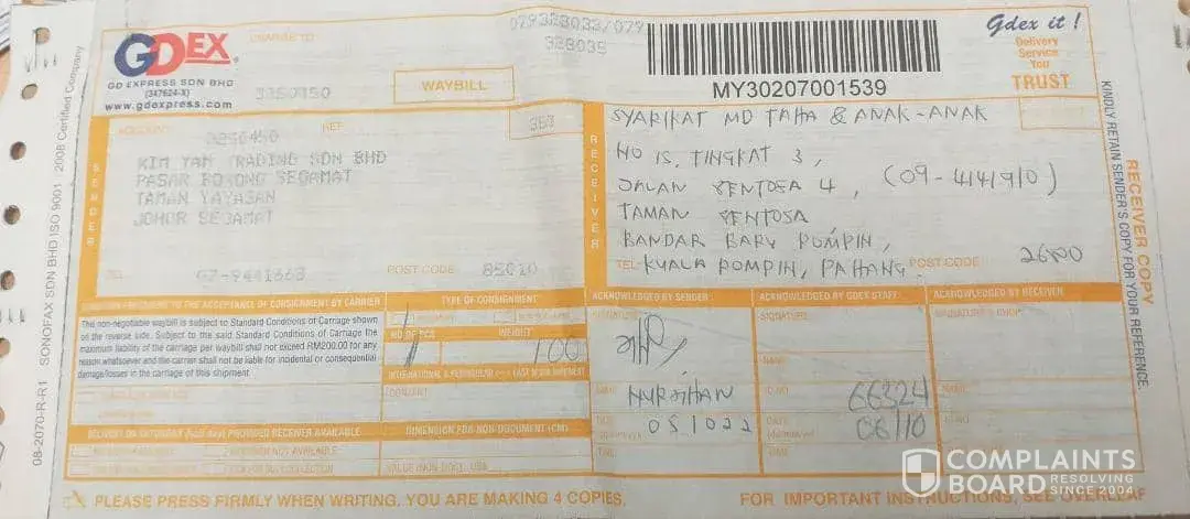 Gdex send parcel on 18th April 2020 but the parcel incomplete.