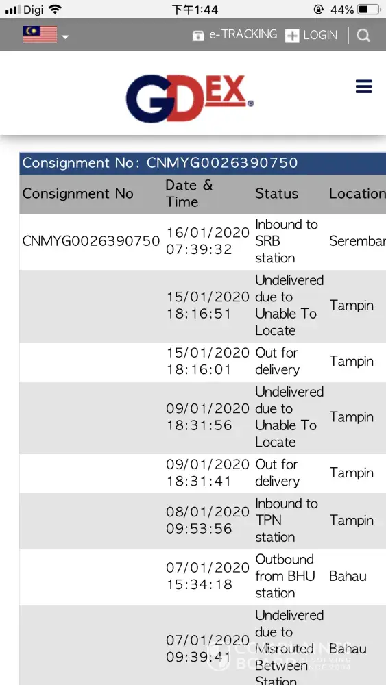 这么大的è¿è¾“å…¬å¸å°½ç„¶æ‰¾ä¸åˆ°ä½ç½® 第二次使用Gdex还是那么的让人失望 全马æ¥è¥¿äºšé‚®å¯„到我家都没问题 å°±ä½ ä¸€ä¸ª 是导航ä¸ä¼šç”¨å— 如果ä¸èƒ½é‚®å¯„哪些地区请通知 ä¸ç„¶èŠ±äº†è¿è¾“è´¹ 还è¦è‡ªå·±ä¸Šé—¨åŽ»å– ä¹Ÿå¤ªä¸å°½è´£äº†å§ 以åŽè´ç‰©é‡åˆ°è¿è¾“公叿˜¯Gdexçš„è¯ è‚¯å®šä¸ä¼šä¹°äº†