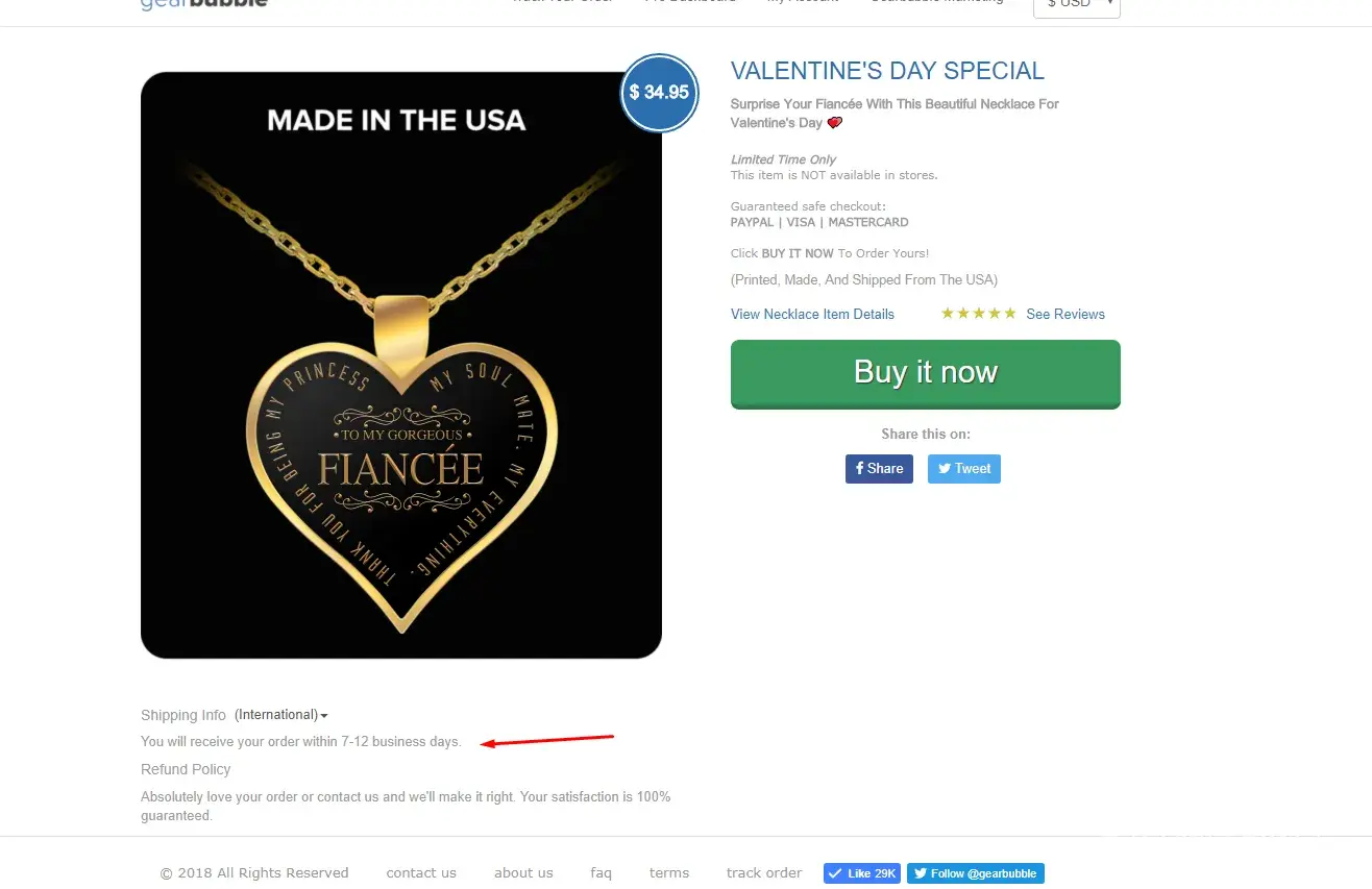 GearBubble to my daughter necklace, necklace never arrived