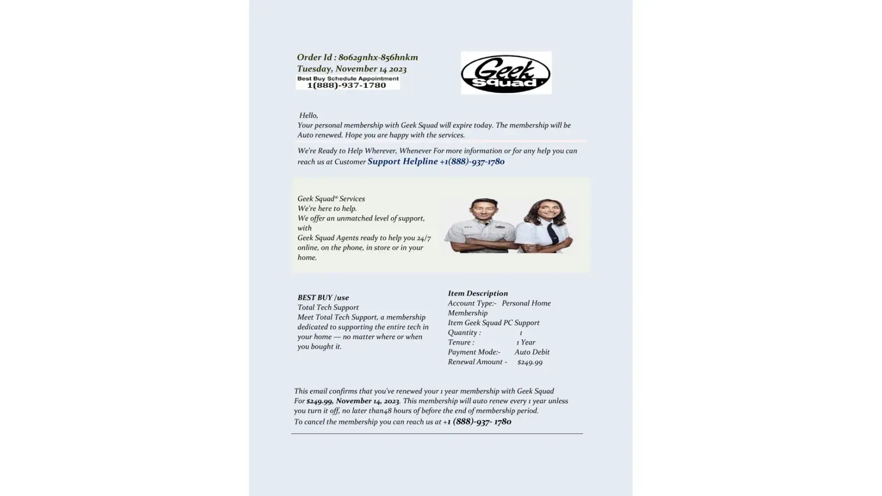 On November 14, 2023 my boss asked me to contact Geek Squad about an invoice he received by email(attached). I called the customer number to request that there should be no subscription and to make sure it was cancelled. The person who answered started asking me my personal information and had me fill out a form with my personal information so they could...