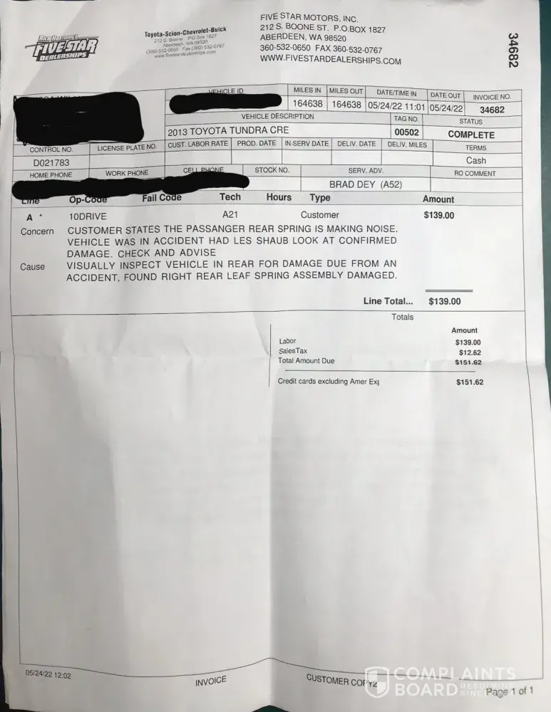 Desired outcome: MONEY SO WE CAN GET ANOTHER TRUCK N THEY SHOULDNT BE ALOUD TO TREAT PEOPLE LIKE THIS