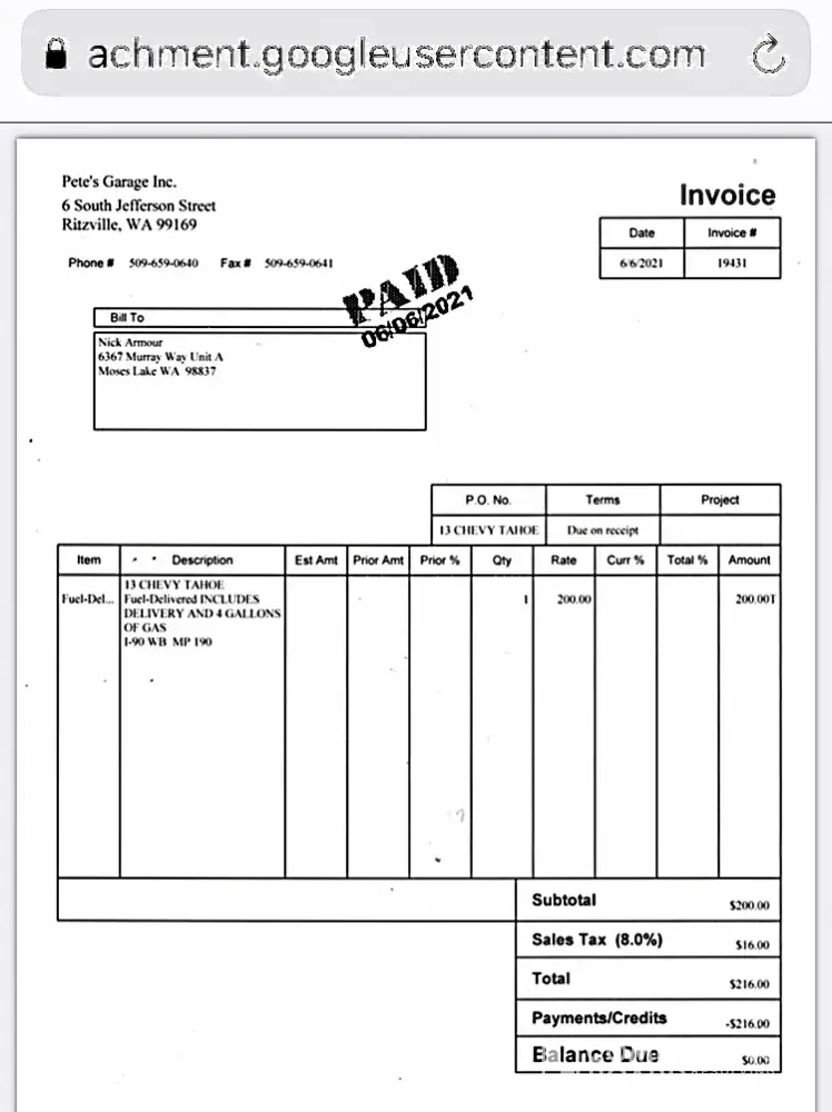 We were forced to pay Pete's garage over $200 out of pocket. After midnight that same night, someone from Geico finally called and left Nicholas a voicemail which we still have. She mentioned that they would refund us what we paid for roadside, etc.