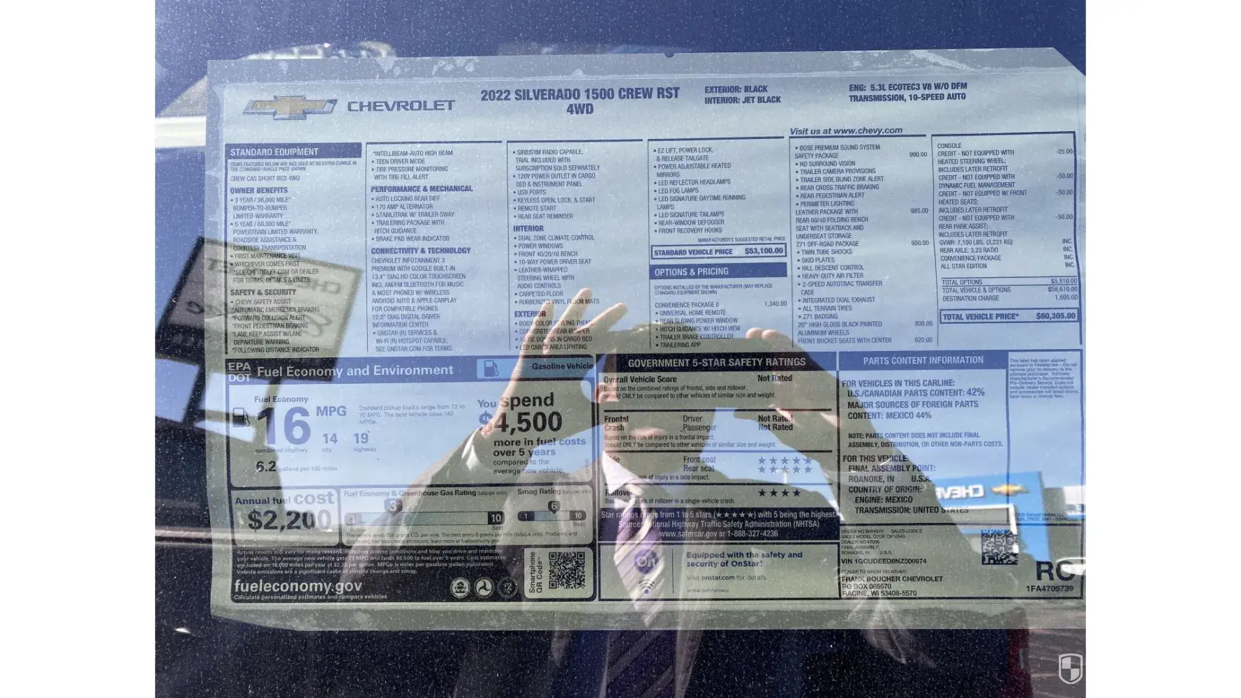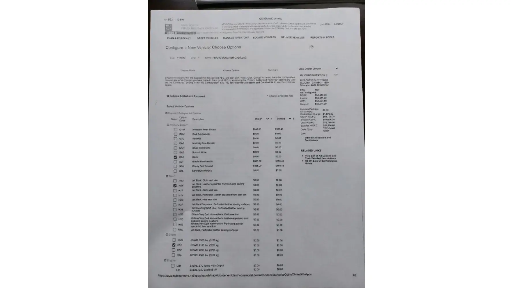 Attached is the original order on 1.15.22 for 58,105 and the window sticker from 3.28.22 for 60,305. The options price and dealer finance charge have not changed which means GM raised the standard vehicle price.