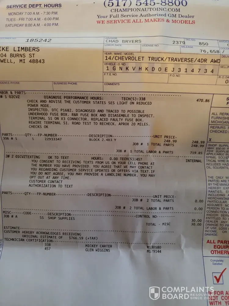 We hope that this fixed it because I know GM has had other issues with loss of power and my wife drives in some bad areas around Lansing which now makes us nervous and wonder if we should we buy her another car.