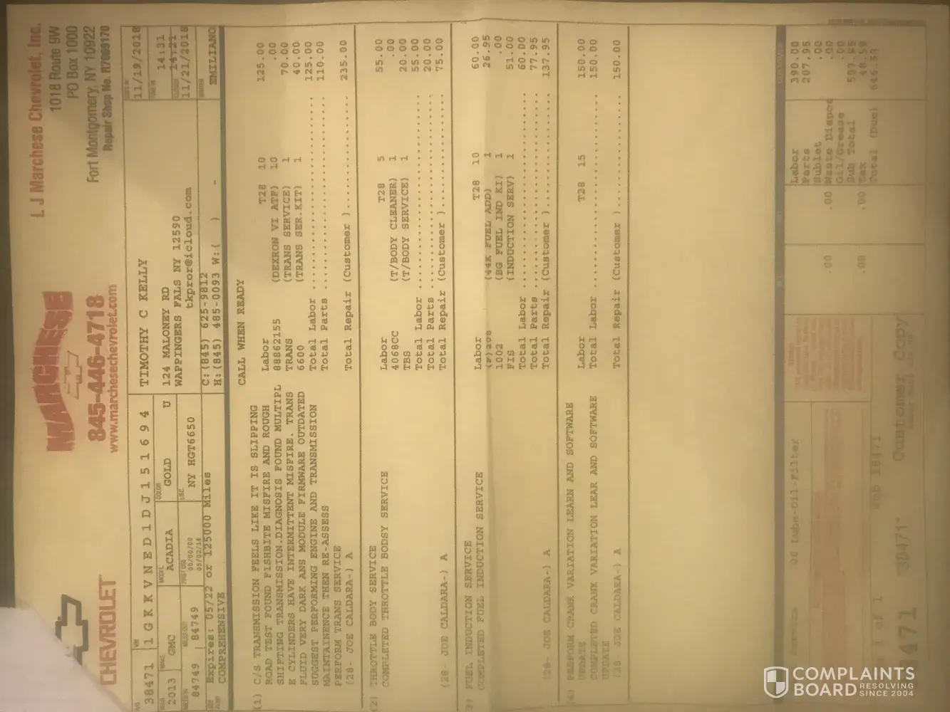 Brought 2013 Acadia to marchese Chevrolet in ny before thanksgiving for transmission issue. Was charged $650 and chastised for "not maintaining " vehicle. Issue was not resolved when I picked up vehicle thanksgiving morning. Immediately sent email to complain- owner, Bryan, responded same day telling me to call next day when he was in office. Couldn't get...