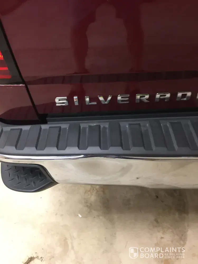 On August 14, 2017 I purchased a 2015 Certified Pre Owned Silverado 1500 VIN #1GVCKREC9FZ39434 from Advantage Chevrolet at 115 S Frontage Rd, Bolingbrook, IL 60440. I took delivery at around 7PM that evening. I thought that by buying a certified Pre Owned vehicle from a large Chevrolet dealer that it would have been through the 172 point inspection that is listed on the Certified web site. I purchased it on a Monday evening and drove it home and parked it in my garage. On Friday (1 day after the 3 day return exchange expired) I hand washed my certified vehicle and found that it had two dents in the rear bumper. I sent pictures to my salesman Brian Stanton on Friday August 18 to ask if he would see if Advantage would replace the rear bumper. He informed me he would check into it and see if there was anything he could do for me. On August 25 after waiting a week for him to return my call (which he told me he would) I called him back and he informed me that he had not gotten any response to his inquiries. I waited till August 25 for him to return my call which he did not do. I then called him and asked him what information he had for me. He stated that the person he needed to talk to was not in but would be in on Monday Aug 28, and he would get with him and call me back on Monday. Its Now September 6 and he has not returned my call to update me on any information. I viewed the vehicle on Advantages web site before making the 50 mile trip to the dealer. I went to GM's Certified Pre Owned Vehicle web page to find out what a Certified vehicle was and It reads "The vehicle must pass Generals Motor's 172 point quality inspection, a stringent test of ever thing from the engine's main components to the performance of its safety and comfort features. Our factory trained technicians ensure that every component of the vehicle, from the drive train to the windshield wipers, is in good working condition. Next the vehicle is taken out for a road test and put through the paces of everyday driving, then it is put up on a lift so the under body can be inspected and checked for completely for cosmetic flaws. If the technicians find a component is not in good working order the technicians will recondition it to factory standards before they will give the vehicle it certification." It is apparent by the two dents in the bumper that the technician failed to complete the 172 point quality inspection, because he failed to restore the cosmetic flaws with this lease vehicle. I now wonder what other points of the inspection were not completed. I believe that Advantage Chevrolet knew the bumper was damaged because on their web site the only pictures of this vehicle showed a close up of the step bumper and the LT emblem. On all the other certified pick ups they showed a complete photo of the rear tail gate and bumper. When I went to get the photos off the web site they had already removed it because I had already purchased it . I based my purchase on information that I read on the certified web site, thinking I would get a like new vehicle. On the day I purchased it I looked the vehicle over and thought that because of the way the sun was reflecting on the vehicle the rear bumper was just shining in the sunlight. I know I have to assume some responsibility for not finding the dents prior to purchase, however I also felt that as it had been given the GM Certified Pre Owned certificate that it had completed all the requirements as stated on your web site. I feel that Advantage Chevrolet should have ensured that it met all the GM requirements. I also wonder that when the vehicle was turned in from its lease that the damage was noted and charged to the previous owner. For GM or Advantage to resolve this I would just like a new rear bumper installed to compensate for their overlooking of the cosmetic flaw that they allowed a Certified Pre Owned vehicle leave their dealership. I am very disappointed with the response I have gotten from Advantage Chevrolet i.e. no return phone calls. I am equally disappointed with my GM Certified Pre Owned vehicle purchase because it proves that their is no quality control on the technicians who are supposed to be preforming these checks.