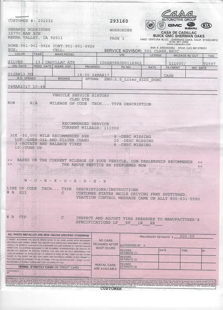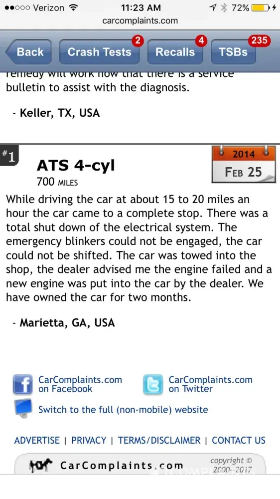 I purchased a used 2013 Cadillac ats from one of your certified dealers in Riverside California on June 24th 2016 under the impression that the car was in good functioning condition, shortly after owning the car I started to notice it would smell like coolant and would sputter while driving almost as if it were on the verge of stalling or cutting out, when I took the car into the dealer for an oil change they informed me that they could not find a leak in the hoses and the car was fine and these engines just ran rough, the coolant smell continued and soon I would sporadically see the check engine light turn on, on 3 different occasions I had called and informed them the check engine light had come on and they told me to bring it in, the only problem would be that after a few hours or sometimes a day or two the light would turn off before I could take the time off work to take it in while the light was on as I was told nothing could be done if the light wasn't on, on 12/05/2016 the check engine light turned on and I called off work to finally attempt to fix this problem, I was informed it was an exhaust cam solenoid and that was replaced under ally warranty, the problem continued and even got worse after the replacement of the solenoid because soon after that happened I started to notice it would eat more coolant and the coolant would bubble in the reservoir overflow, when I took the car in again for an oil change I informed them and they told me that happens when the coolant level is low and If I added coolant it would fix the problem, I stayed on top of the coolant issue and the bubbling did stop for awhile but I noticed the overflow would fill up to the top and not re empty out when car would cool like in previous cars I have owned, I continued to drive car until it finally overheated and I had to stop and wait for the car too completely cool down, I took car back in on 2/17/2017 and told them the problem with the coolant had gotten worse and asked them to run a test to see if it was a blown head gasket or a leak in the cooling system that has been causing the problem, I was informed that the car had a crack in radiator on the bottom right side and that was causing the coolant leak and the bubbling in overflow and it would be a 1300$ fix, it didn't make sense to me because the way the coolant was disappearing it would have had to have dripped on the ground when parked and ive never seen a puddle when id park the car. I took the car to a shop half a mile from my house and they informed me the car did have a leak but not where the dealers compression test had originally shown, the car was leaking on the top left hand side of the radiator not the bottom right as they had informed me at the dealer, i had to pay 900$ to get it fixed. i got the radiator replaced and topped off with coolant and yet again i noticed a significant drop in the coolant level but was told by the dealer to test drive the car and to take it back to them if it continued and that theyd only charge me half the amount they usually do to diagnose it. i drove the car for two days while carefully monitoring the gauges for any inconsistency, on Saturday morning a little past midnight the car sputtered and completely died out throwing up the check engine light, abs, traction control and a few other things all at once, when i attempted to restart the car i realized i had no control over anything electrical in the car and the brake and gas were stiff and i was unable to shift into neutral to move the car to a safer position. The car was towed to a nearby dealer where i was told by the service technicians that my motor had completely locked up and they cant seem to figure why, they told me they originally believed it was an electrical issue but after testing it the starter, alternator & battery appeared to be fine. after extensive research on forums and complaints about the car i found that i was not alone and this has happened to multiple people with the same car with the end result being a motor replacement or dealer buy back, i then got an uber to the dealer i originally purchased the car from in an attempt to get them to fix, trade or buy back the car because it was faulty from the beginning and the car fax even showed multiple visits to the dealer by previous owner for engine idling and to get cooling system checked all of which i was told was "basic maintenance" when i originally asked if the car had any issues before buying the car in the first place, they told me there was no proof and the most they could do would be to pay half of the cost to have the dealer where it is currently at inspect it unless i had it towed to them myself out of pocket($560) and they would inspect it themselves, i don't see why i would have to pay to get the car fixed when i have done my part as the owner to inform them of the issues and take the time off to bring the car in for them to not do a thing about it, this is a well documented issue with these cars on online forums with multiple people complaining about the same thing, i have kept my cool throughout the entire process because i love the car and my family has owned multiple gm vehicles but it is really disgraceful that even when providing them with proof of the problem and even examples of it happening to other vehicles of the same kind i get blown off and left 20+ thousand dollars in debt for a car that was sold from a certified dealer, this type of behavior would be expected from a random scammer on the street but not from one of your certified and well known dealers. i would have been happy if they took the time to actually look at the problem and what other dealers did to fix it but even after showing them profit was a common issue but i was blown off, i really wish someone at a bit higher level would reach out and help me resolve this issue, i still love and believe in GM's quality of vehicles but i know that not every car off the production line comes out to expectation, i feel a 