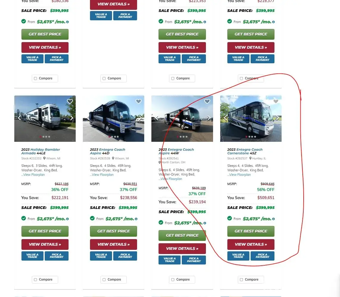 Desired outcome: Consumer protection. General RV should honor their advertiosed sales price