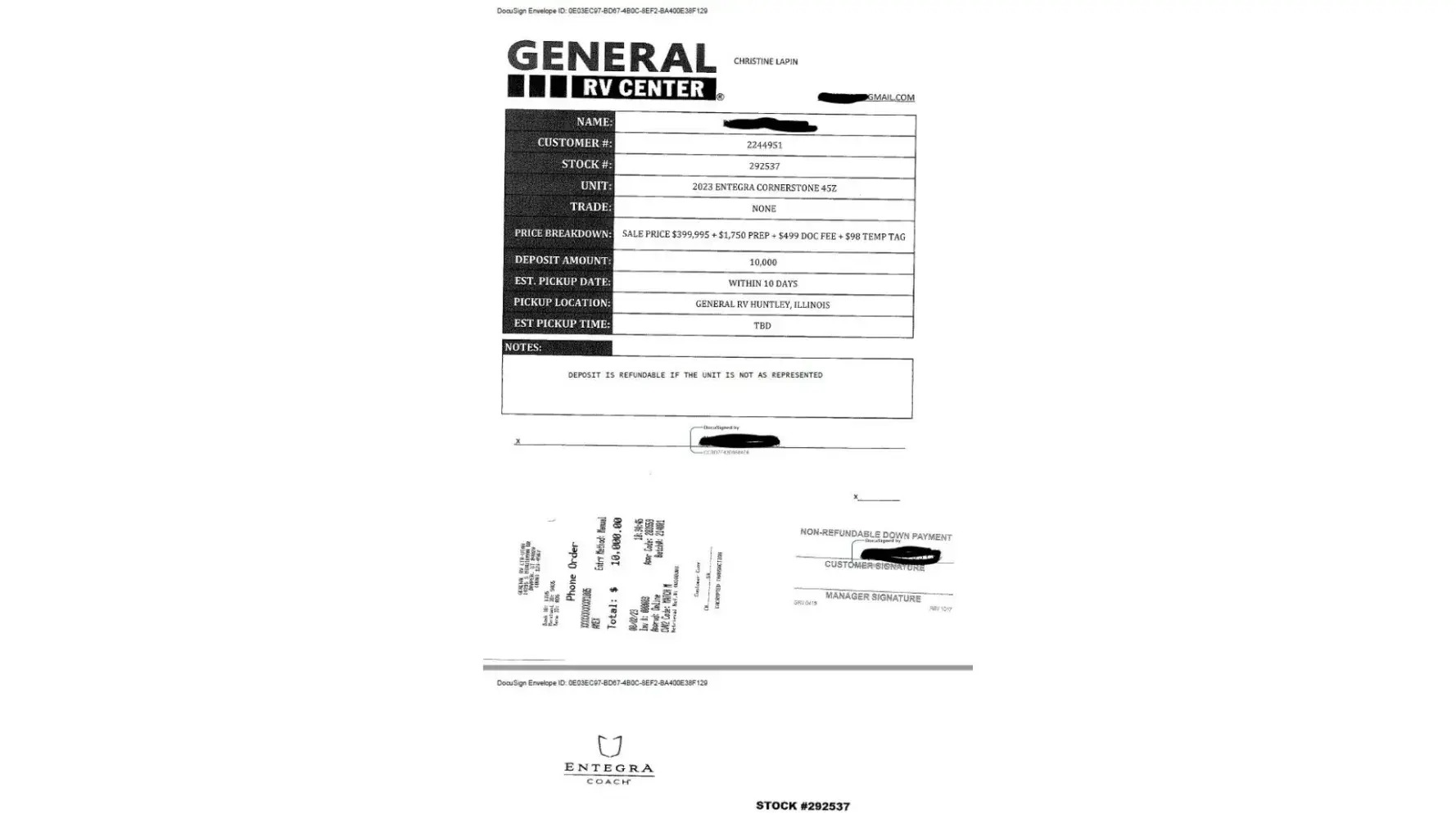 The worse rv liars anywhere in the world. Last week I bought a $400,000 diesel rv from these fools. I paid a $10,000 non-refundable deposit and signed the paperwork via docu-sign listing the new 23' entegra cornerstone I bought. My conversation with the online person and then her sales manager took a few hours to complete the deal. They told me to book my flight to chicago and pick up within 7 days. I booked a flight with united and when I was about to redeem a cd to pay for it, I got a call saying they made a mistake and it was really $600,000. They asked me if I wanted to pay $200,000 more? I should have known what kind of a place this was when the first thing the sales manager said to me when he called, was "how about ceramic coating"? That was a big red flag because ceramic coating is a big scam. Thanks for the great service general rv center!