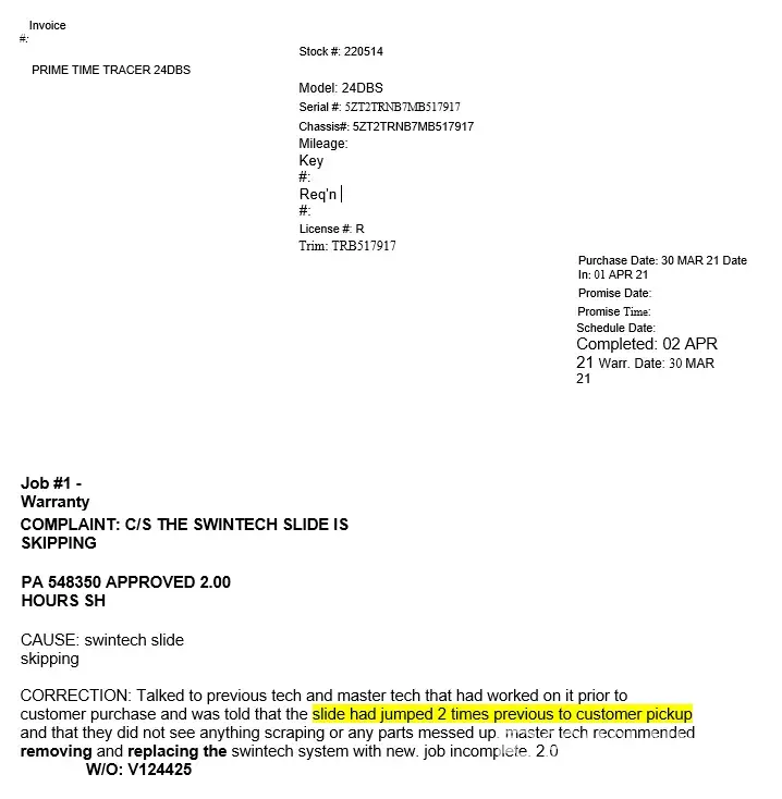 My wife and I purchased this camper from the Hershey RV show on 9/18/22 when we arrived at the dealership to pick this up we did our walk through we had a lot of issues 1st thing we noticed Was all the water laying on the floor they told us it was because it was pressure washed with a deep clean, all the sunshade boxes were loose or falling off the theater seats had a stain on them, the table it was falling off the wall, trim work along, the baseboard was all scratched up and falling off the cabinet in the kitchen. Veneer was coming off in the bathroom. Shower stall was cracked. The vanity again drawers were misaligned, and the veneer was falling off. in the bedroom drawers were not aligned cabinets were falling down. Missing buttons caps all over, no on/off switch for Wi-Fi Staples were sticking out along the outside of the slides on the outside we were missing The ladder rack, back up camera and all of my quick disconnects all the sealant around the roof windows doors looked very excessive and done very poorly, slides were not closing tight against unit, received the wrong load distribution hitch for my unit. The solar port in the storage was hanging out of the wall. all the covers for my black water, gray water broken. Told too take and bring back for the repairs after our trip so here how our trip went we arrived, went too set the unit landing jacks would not come down without binding up, noticed that our toilet will not hold water. Our kitchen sink was leaking from the faucet, and something from underneath the unit was also leaking couldn’t figure out what was leaking. Went to use the heater and heat was not blowing out of any of the vents, but the bathroom, opened up the sleeper sofa to use, and it was not aligned at all very uncomfortable that night it rained when we woke up. My wife and I had a beautiful waterfall feature coming down the front wall of our bed getting that cleaned up to walk out into the main living to everything being so saturated our slides were leaking. Staples were coming up through the floor. You could feel them underneath popping up. The dinette would not lay down and able to be turned into a bed like it supposed to be. we just closed the unit up and returned it to the dealer. The service manager greeted us to go over all these issues. He took multiple pictures with his tablet. He got up on the roof and took multiple pictures of what he called holes in the liner. my unit has been sitting at your dealership since October of last year. I have been in contact with them multiple times. I am so lost on what is actually done what is not done other than it seems like I’m getting nothing but a runaround. we are going on nine months that I have not been able to use my unit. I have asked to trade this thing in on another unit I’ve asked for them to buy it back. I’m not getting anywhere at this point I am being forced to contact attorney. My name is Robert Gamble [protected]