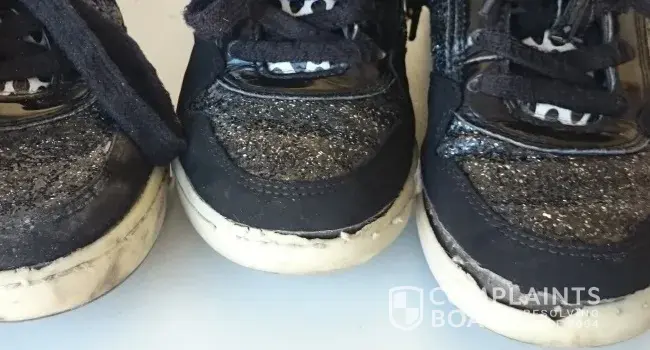 I bought two pairs of Geox shoes of the same kind (nr 28 and nr 31) for two different kids. After one month use both shoes are completely damage. I have 3 children and I am a Geox customer for 9 years. Every year I buy between 4 and 6 pairs of Geox shoes, which last for a complete year. This time, these shoes did not resist for more than one month. I am sure that is a defect on this particularly model, because it is the first time that I observe this behavior and two different kids have damaged those shoes in the same way. However, the Geox does not accept their fault and claims bad use of my kids. Two different kids, two different sizes (28 and 31), using for 1 month and the same flaw. http://geoxleaks.info/ https://www.youtube.com/watch?v=sEeP-GuehNs
