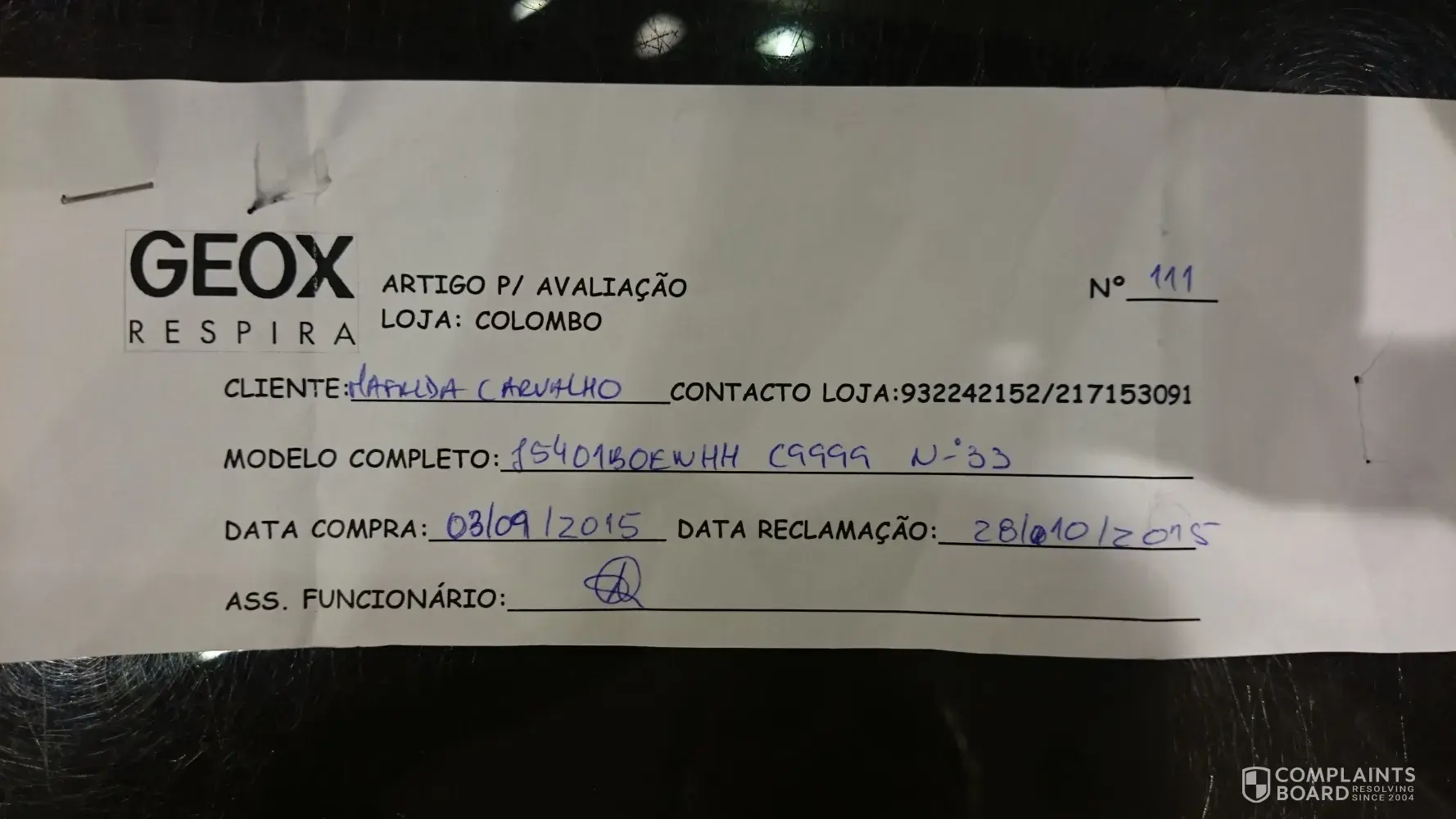 Then I gave a call to their customer service number but I was given a specific (costumer.care@geox.com) email address to make a claim. I sent them an email and received a reply saying they will call me with a ticket number. Since I didn't receive any phone call, I sent them a few more emails, but there's no reply. When I called their 1800 number they said they cannot help anyhow for store purchases and they didn't provide me with any alternative contact information to get help store-related problems.