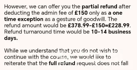 Paid £378.99 for a course THEY cancelled. No full refund offered despite THEIR policy (clause 3.1.3). Will be reporting to @citizensadvice + @WhichUK. Totally unprofessional.