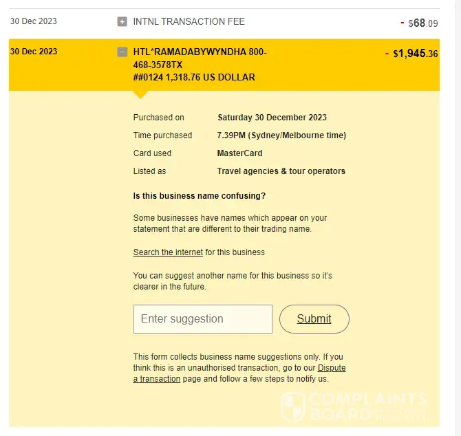 2. The whole amount was then charged in USD rather than AUD despite the invoice being clearly in AUD. The abviously we were then also charged $68.08 international transaction fee!