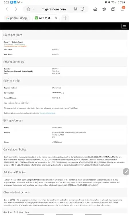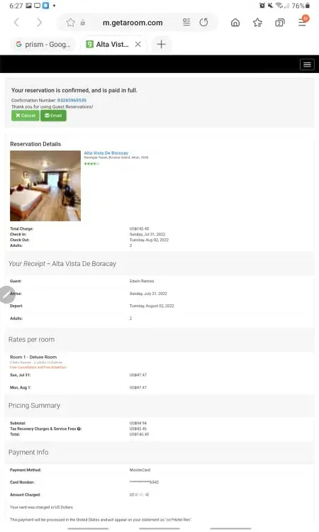 Booking reference #R3265969535 Alta Vista Hotel Boracay Phlippines