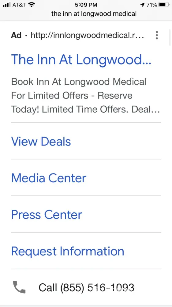 On 12/8/21, I attempted to book a room at the Inn at Longwood Medical in Boston MA for that evening as my wife and I rushed into the hospital. Â When I searched for their contact the top link appeared to be their direct site, so I called that number. Â (Note the site misrepresented their URL showing the Inn at Longwood's address. Â When a representative picked up the phone I asked them to confirm that I had reached The Inn at Longwood Medical, which they said they did. Â I explained that I was going in for a medical procedure and requested their normal patient rate. Â I was told they only had limited rooms available and pressured to book now or I would not get a room. Â When I inquired that the rate was over $100 more than I was told the extra was due to taxes and limited availability and I needed to book now or would not have a room. Â So, we booked the room in good faith that the agent was no misrepresenting themselves. Â Immediately after calling I felt suspicious and searched for another number to call the hotel directly. Â When I reached the hotel, they confirmed they had plenty of availability, were not overcharging patients and that I hadn't spoken to them. Â I immediately called GetARoom.com back to cancel my booking and they told me that they would happily cancel but the hotel wouldn't allow it. Â I called the hotel back who confirmed they had no such no-cancellation policy and would cancel the reservation but GetARoom needed to contact them. Â When I called GetARoom back and spoke to a manager they confirmed agents are not supposed to misrepresent themselves, but still refused to cancel stating it was the hotels fault. Â My reservation number was #R2994189882. Â To me, this is clearly a scam and I don't understand how they are allowed to misrepresent themselves on Google and over the phone. Â This seems like clear fraud and price gouging targeting patients needing critical care.