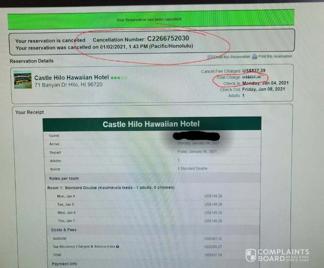 Attached is the screen shot I took when I cancelled the reservation.