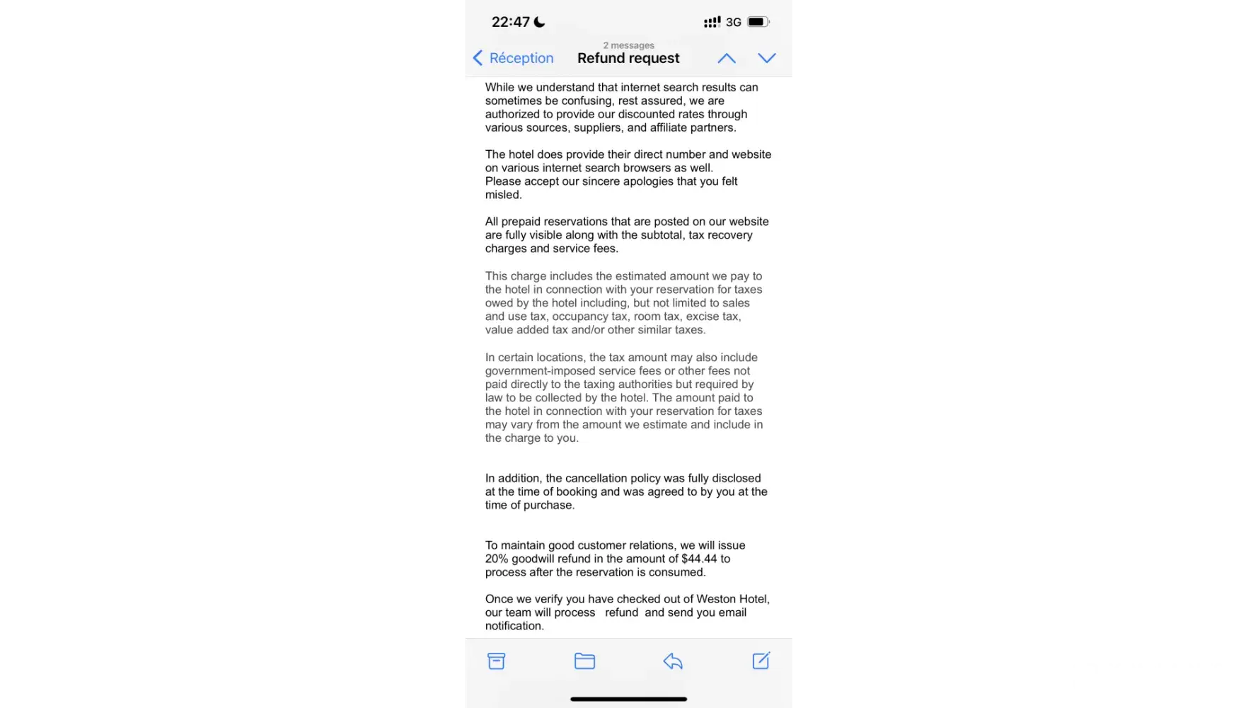 This company needs to be reported and brought down ! After further investigation and research their are thousands of complaints about them on BBB , tripadvisor and other review sites that they acting like you are getting a reservation from the actual hotel reservation online service - they add bogus fees and no ware on the booking info indicates its a non refundable transaction . Please help others by invesigating further -just found out this company was acquired by priceline.com who now is the parent company .plus their is an active