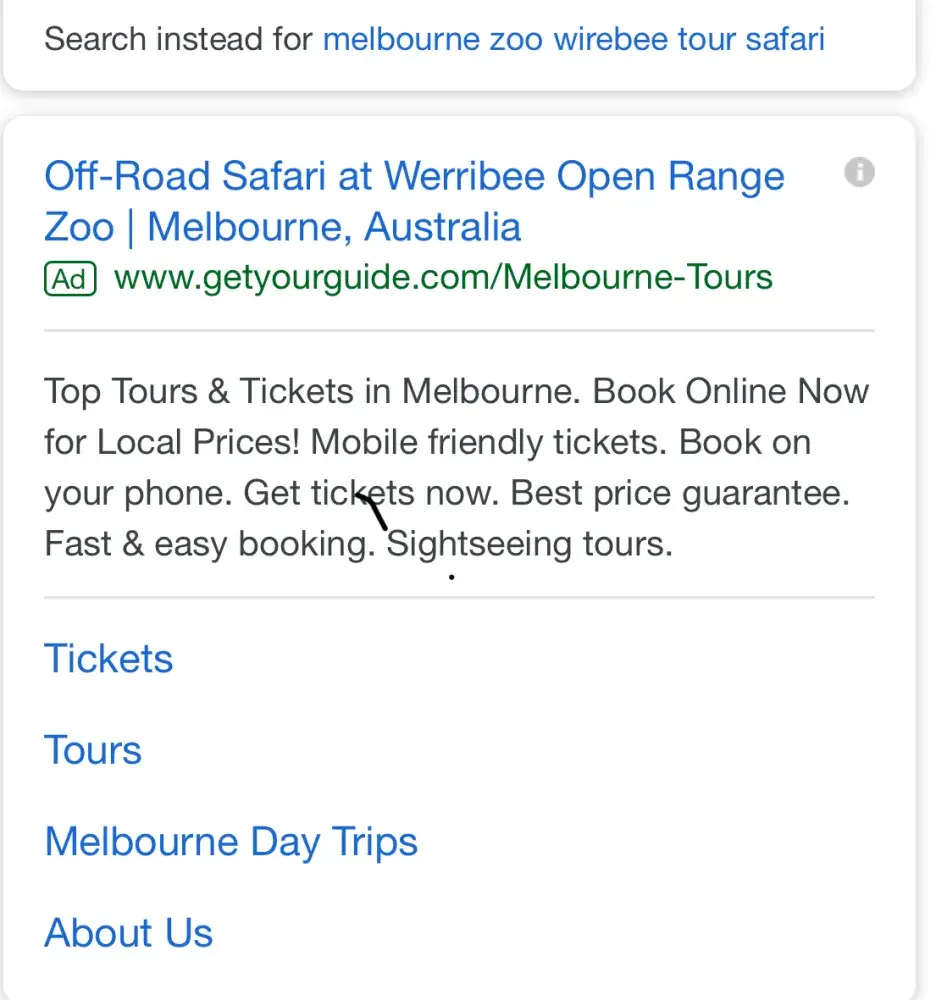 We booked with get your guide.com for the melbourne zoo in victoria. Australia