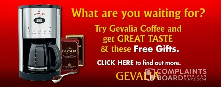 In conclusion, I would have to say I have yet to have had a problem with Gevalia Coffee, in fact, I've been spoiled by it to drink regular store bought coffee. I went to law school at Tulane in New Orleans, and spent several years there, and I always liked the coffee the retaurants served there, and of course, in New Orleans, coffee and hot skim milk served with beignets, New Orleans substitute for the lowly donut, are a tradition there, especially at places like the world famous Morning Call in the French Quarter near the Misissippi. If you do not want Gevalia's coffee after receiving your special with a coffeemaker or some special, all you have to do is call their customer service and cancel, there being no obligation to keep getting coffee. So I would have to say that most of the consumer complaints I have read of on the internet are nothing but a tempest in a teapot with the customer often to blame.