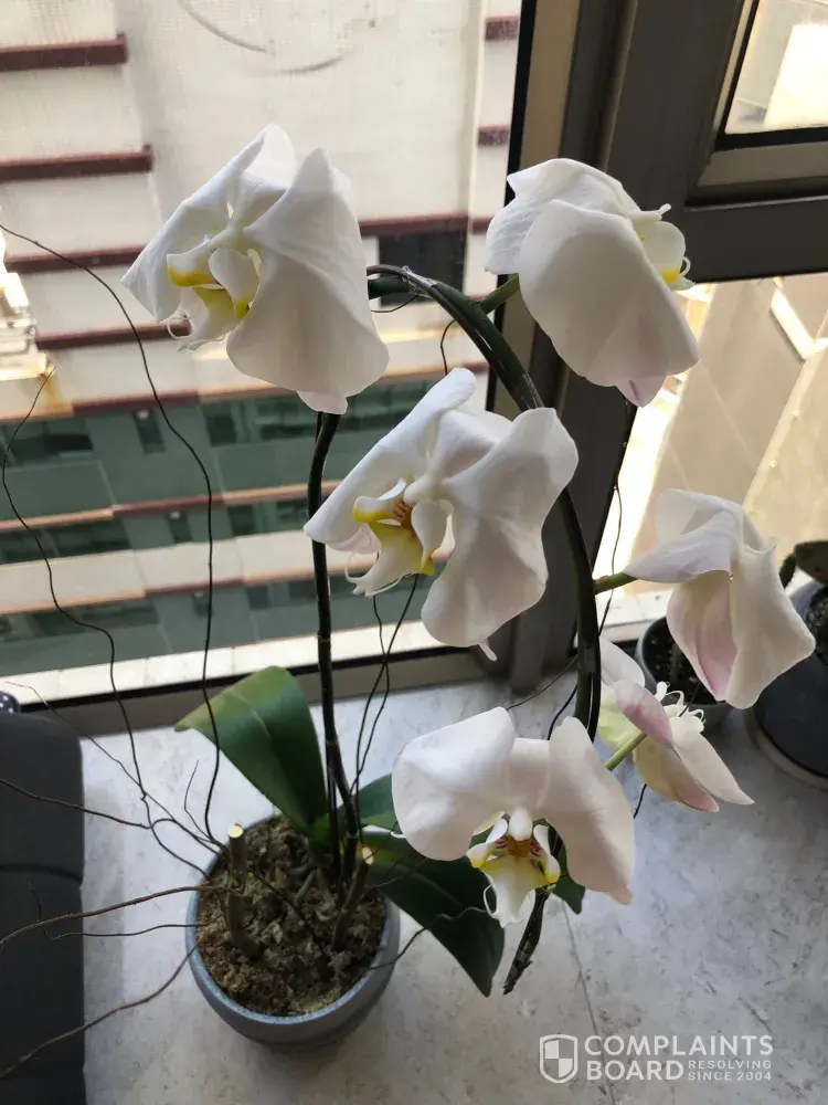My friends and I bought an Orquidea for a friend who had just delivered a baby. The Orquidea was two plant in same pot (two Orquidea). The price was extremely expensive, It cost $135 (£100). She received the Orquidea and after a few days one of the plant started to die and she had to removed it from the pot. The second plant is dying at the moment so, the Orquidea has last for two weeks only. This was a friend' group gift with a sentimental content as she is alone with her husband in Hong Kong.