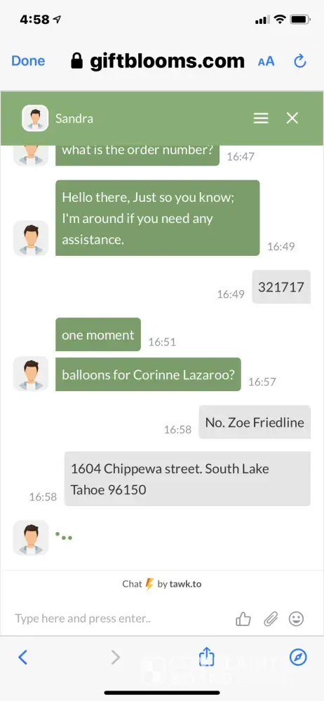 I ordered for same day delivery for my five year old niece who just came home from surgery. No delivery that day nor the next 3 days. You can only live bot chat. There was a problem with the driver (supposedly) the first day. No reply the second day. I emailed and received a reply that the delivery would be the next day (two days late). Lo and behold I received another email this morning stating the items I wanted, a get well balloon bouquet was not available. They posted a stock picture of flowers and a small bear asking if I would like this replacement. I had already reported to PayPal at this point. This company are scammers! You cannot speak to anyone. Luckily I found someone to deliver balloons and a big pink bear. I am on a mission to let everyone know how awful this is. My order was almost a hundred dollars! Now I have to wait for PayPal to investigate and refund.
