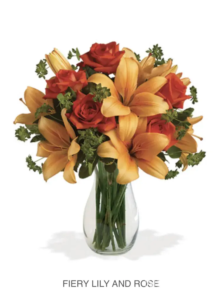 I order the fiery lily and rose because of the fall colors but when it arrived instead of orange rose like the picture they were yellow and it came with like three roses not 5 like the picture in all the flower arrangement was not what I ordered very disappointed I don't know it's there's a way to fix this but I'm not happy with the flowers My email is [protected]@yahoo.com