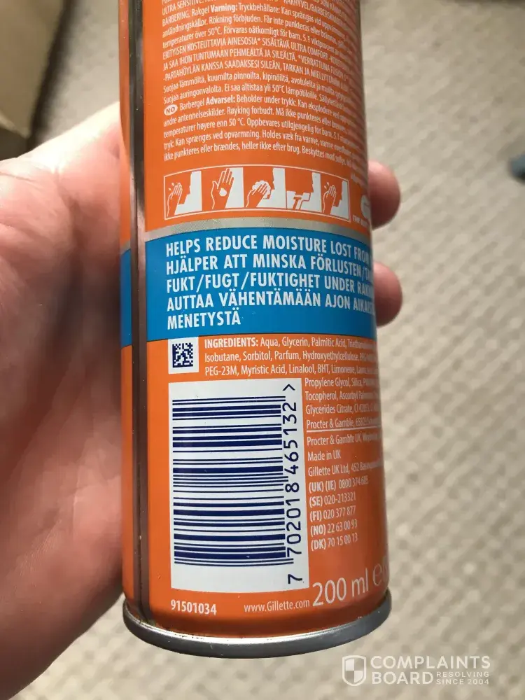 Hello, this is the second time I have encountered this issue with the 200ml fusion 5 shave gel. The can is only half empty and no longer discharges any gel (or very little) when the trigger is pushed down fully. Barcode reads 7702018465132. Number on the bottom of the can is 9037789610. Expiry date 02/22. see attached files. I don't have the receipt anymore as it was purchased months ago, most likely from Tesco Extra in Lichfield, UK.
