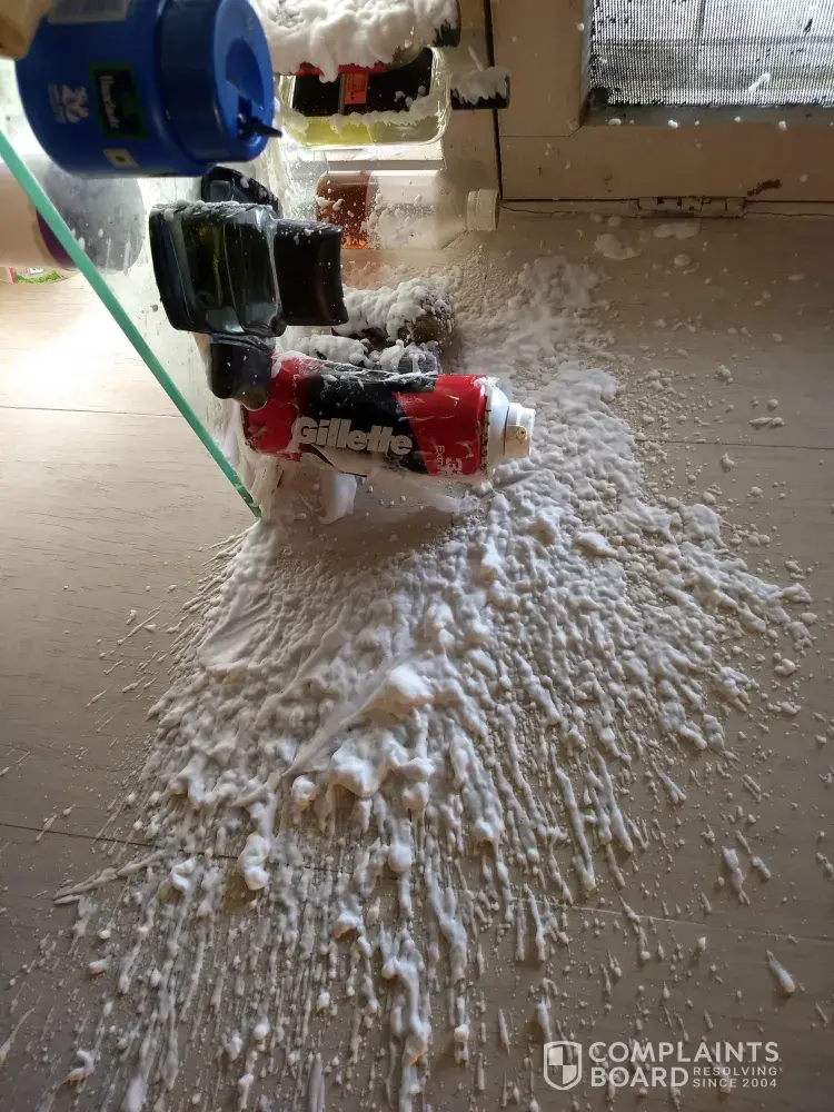 I have been a regular user of Gillette products viz. Razors, Shaving Foam etc. for many years. However, I am sorry to bring to the notice that yesterday at 10 am, the Gillette Shaving Foam container exploded in my bath room just like a bomb with a loud noise causing all the bottles of oil, shampoo, aftershave lotion, etc kept near by being blown away. Luckily no one was in the bathroom at that time. It is shocking that a company which is so well reputed makes such product.