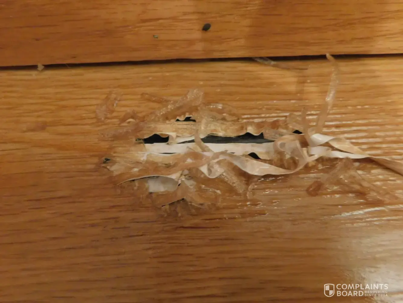 The hole was not there last night, so this happened in a days time. Here is my concern? If whatever is in these fragrance bottles can eat a hole through brand new flooring, why would I want to breathe these fumes? What about the safety of infants? I called Glade to report this. They wanted to send me a $50 dollar check! I would instead like my floor repaired.