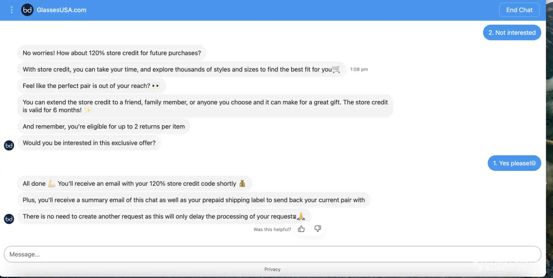 Desired outcome: My glasses or refund!
