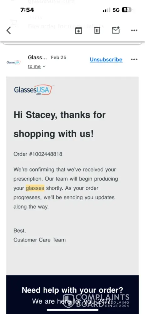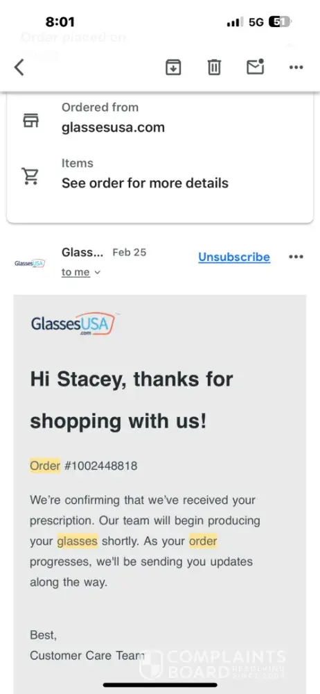 Read full complaintIs Glasses USA Legit?