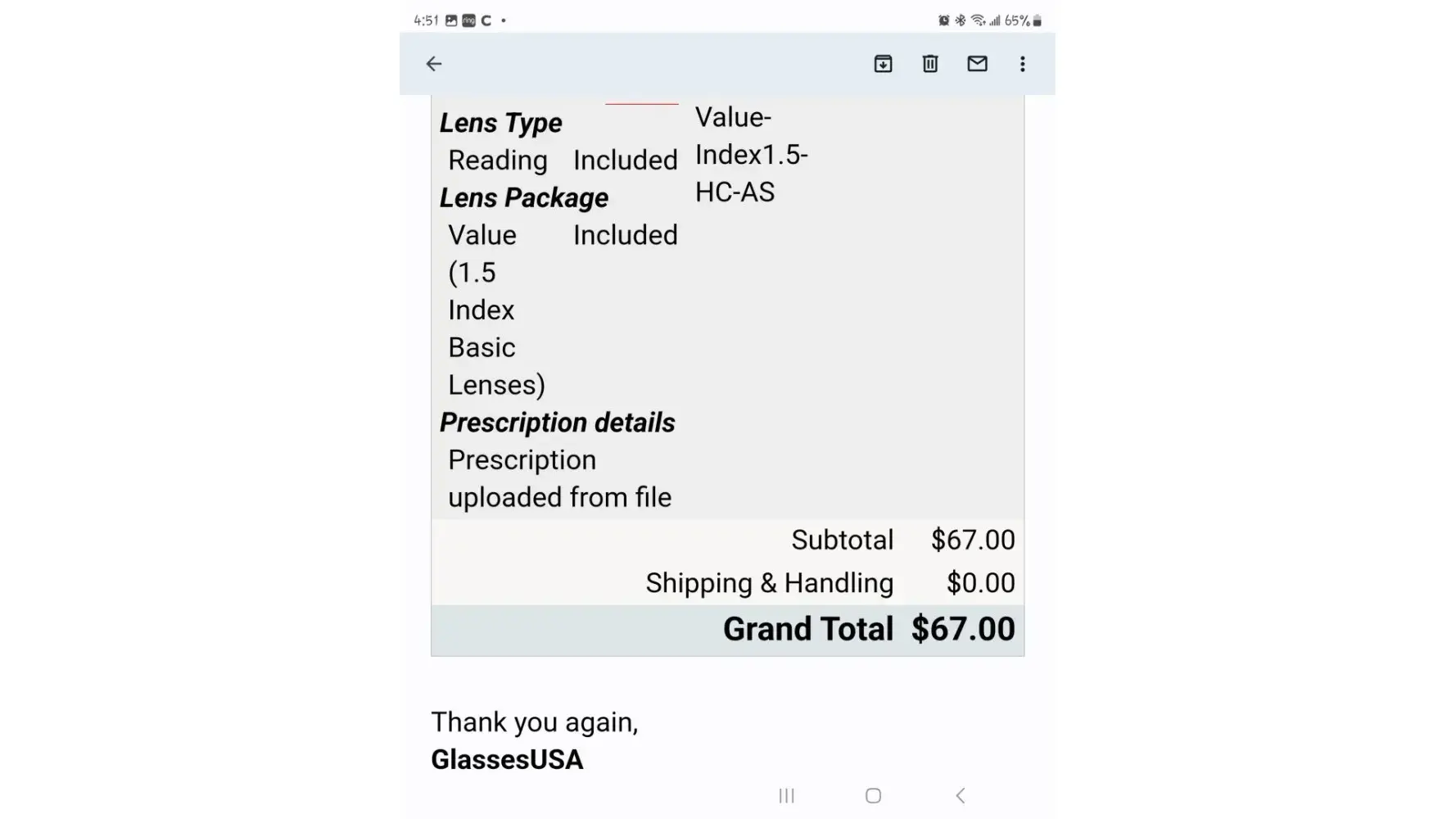 Now we have no glasses and no refund! Thanks a lot GlassesUSA.