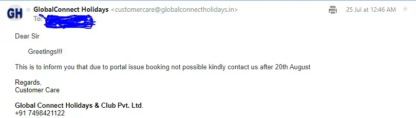 Global Connect Holidays(CIN No. U63090PN2014PTC151421) is completely fraud company with unprofessional staff below are my suffering story with them.