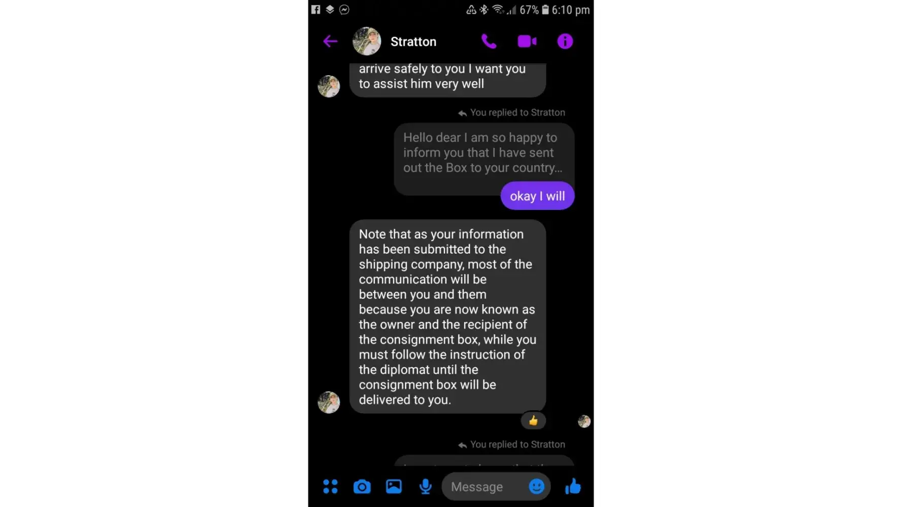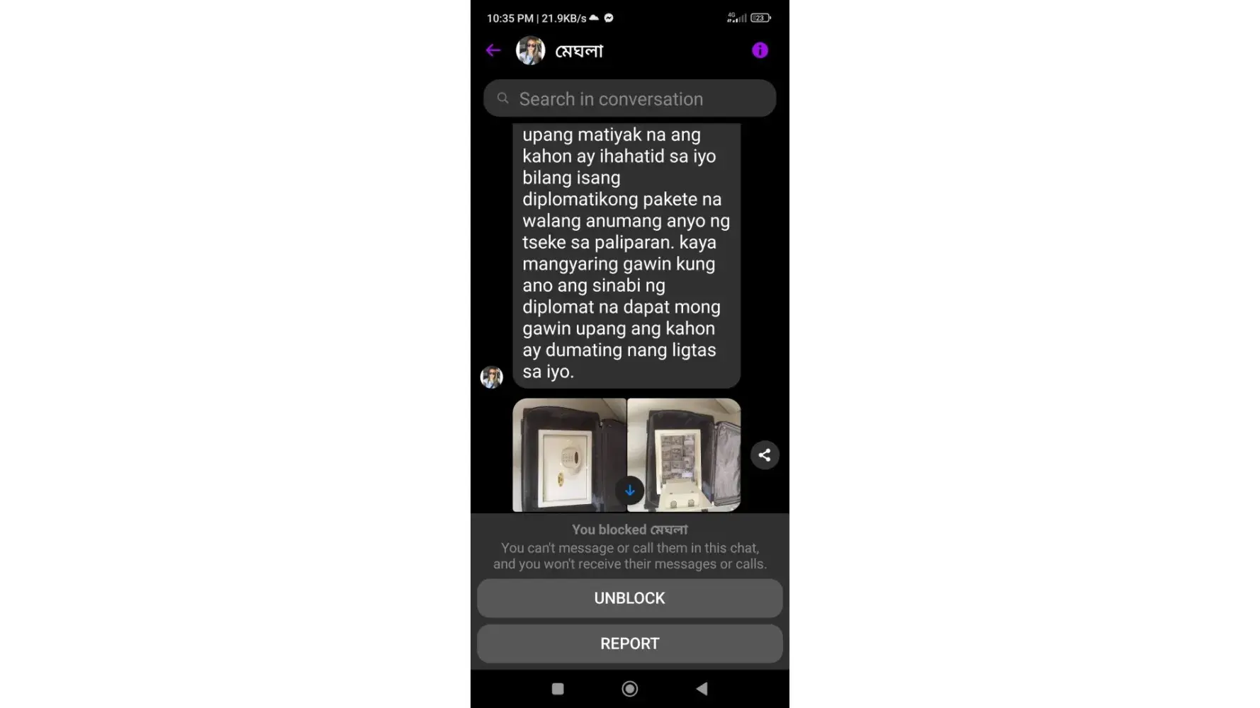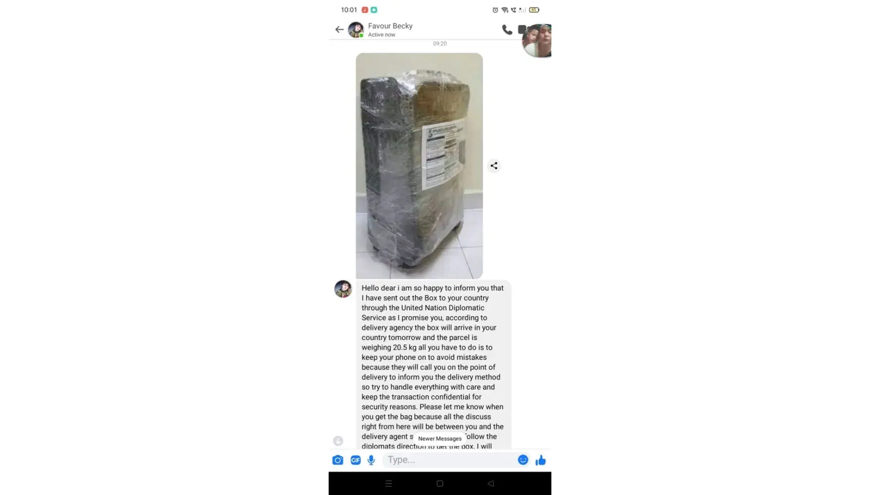 I was encountered like that nagpakilala xa Sonia Dickson tga Syria ,nagpapatago Ng Pera,at nanghingi Ng information TS ngayon nagchat naipadla ndw nya parcel at my babayaran dw ako ,e ndi nmaan ako pumayag na ipadala nya scammer pala to Ng tingnan ko ngayon,pls help