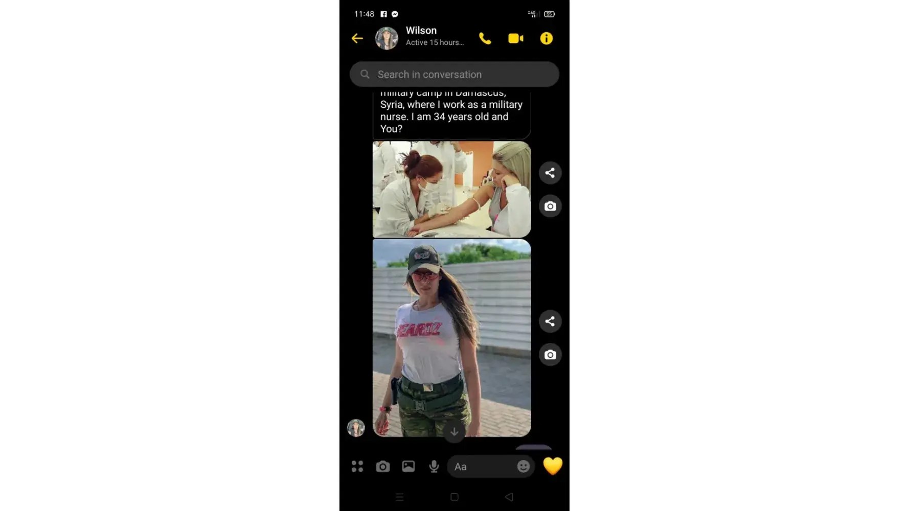 I can also chat with the messenger, he claims to be a soldier, the photo with you is a fake girl, sis