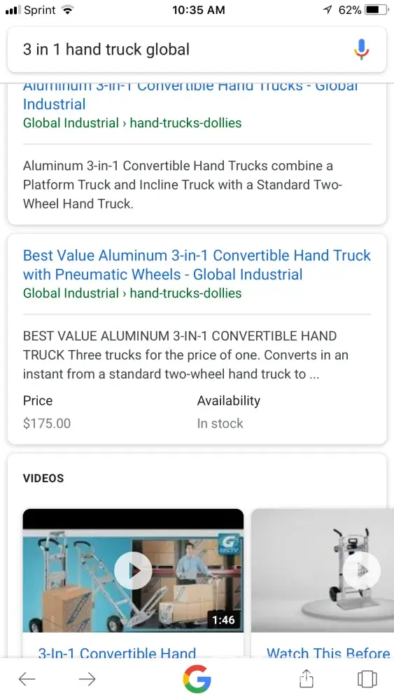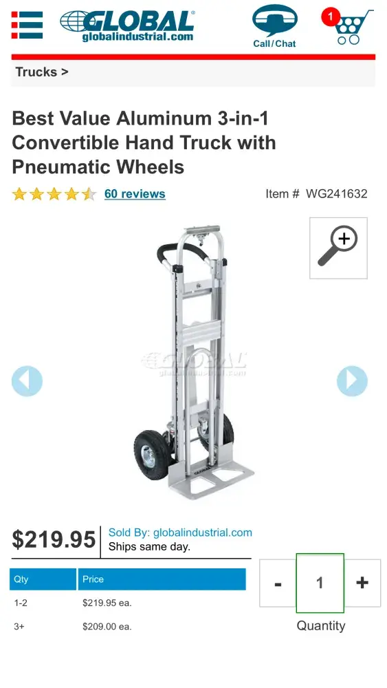 I am in the market for a 3 in 1 hand truck so I did a simple google search and one pops up in one of your company's ads for $175 but when you click the ad it comes up for $219.95 like the old bait and switch maneuver. So I started a chat with someone and even sent how I found it with screenshots in an email and wasted about 45 minutes of my day for them to keep saying they cant sell it for the $175 so I will be sending this to the BBB